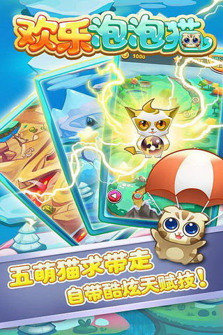 《欢乐泡泡猫》将经典打泡泡玩法与谐趣创新完美结合。游戏拥有清新亮丽的美术风格,包含上百关特色有趣的泡泡关卡。 这里有深海、森林、沙漠、冰雪等不同的主题区域,有怪兽关、城堡关、限时关、解救关等不同类型的关卡,还有海星、花瓣、乌龟、彩云、风眼等不同的新奇玩法。在这里,你可以帮助喵星勇士解救喵伙伴、巧过城堡关、选择不同的猫咪上场打泡泡,收集有趣的兑换物,进行一场曲折而有趣的大冒险喔!
