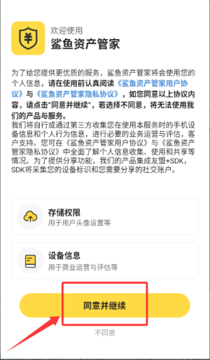 1、于协议页面点击同意并继续,授权后进入资产主界面。