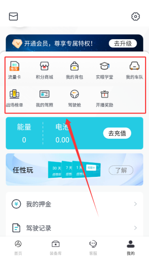 4、个人中心可进入积分商城、管理背包道具、查看车队信息、榜单及开播奖励。
