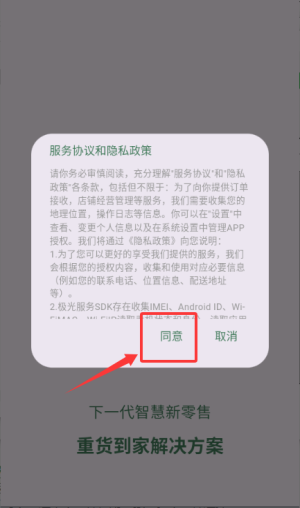 1、于服务协议弹窗点击同意,确认后可进入找回或登录界面。