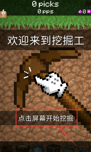 2、点击屏幕中央任何位置,开始挖掘。