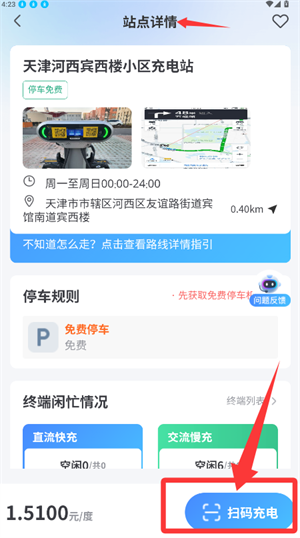 可查看充电站点充电价格、空闲枪口、地址和图片等详情。
