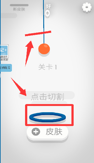 2、进入游戏把绳子切割让球掉进圆圈里就过关。