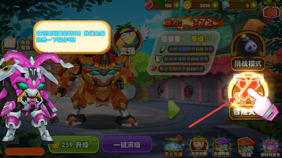 1、收集经典果宝角色组建队伍挑战丰富关卡。