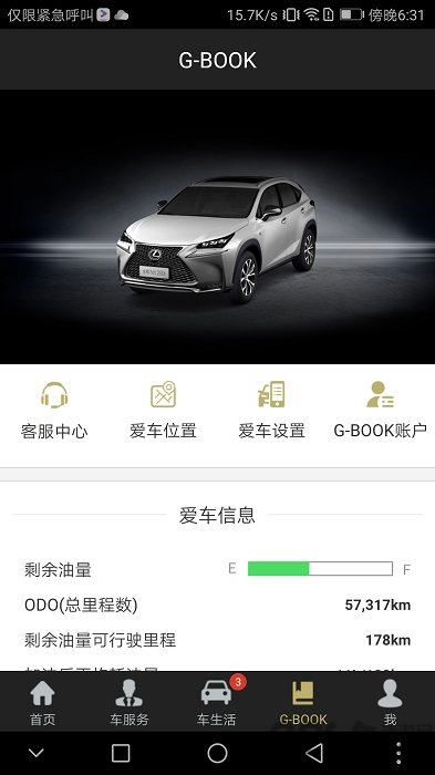 ▼爱车信息服务:查看车辆油耗、行驶里程、状态等信息。