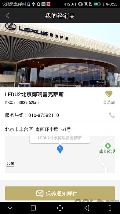 ■经销商信息用户可以查看购车经销商或附近经销商的信息,也可以一键拨打经销商电话,并将经销商地址发送至车载导航系统。