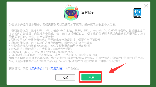 1、点击温馨提示里的同意并继续。