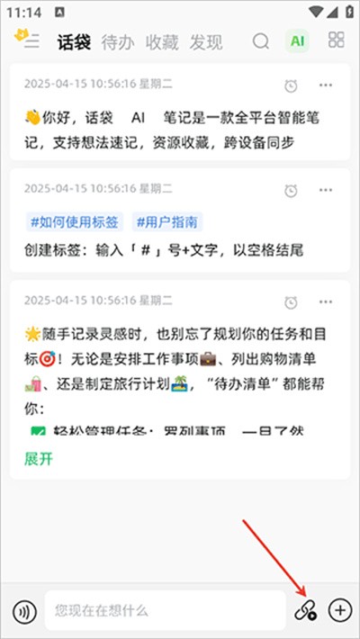 1. 在使用话袋App进行笔记时,点击右下角的链接图标。