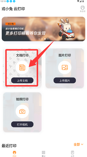 1、在主界面找到文档打印区域,点击上传文档。