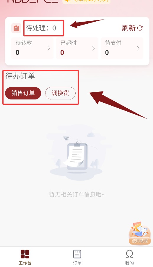 2、工作台界面展示待处理订单,便于用户快速跟进处理。