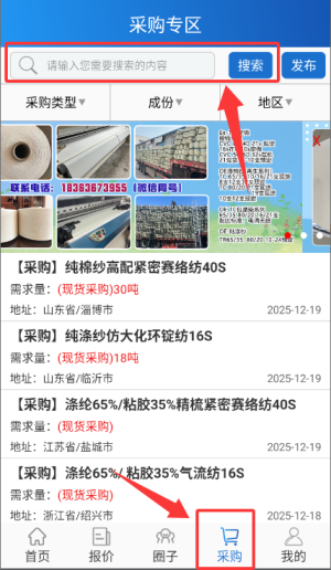 2、登录后切换到采购模块,在搜索框输入需求内容并点击搜索按钮。
