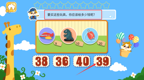 2、计算三个玩具价格,选择正确总金额。