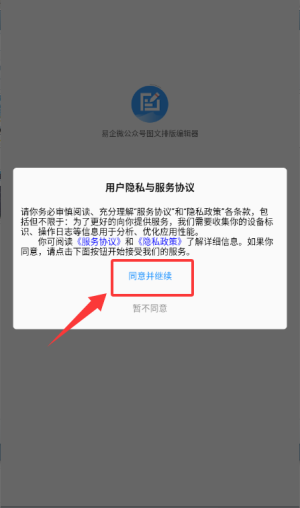 1、打开应用后阅读用户隐私与服务协议,点击同意并继续进入功能介绍页。
