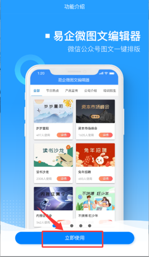 易企微公众号图文排版编辑器最新版是一款非常好用提供公众号排版功能的全新工具软件,在这里能够一键排版操作非常简单,还可以提供精美图片素材帮助用户来来优化自己内容,还有超多模板可以使用,有需要的话就来试试吧!