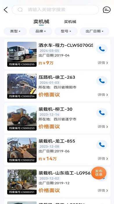 还可以在这里获取周边出租出售的设备,以后寻找设备会非常的轻松。