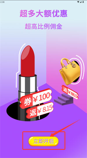 1、进入优惠引导页面,点击立即开启按钮即可进入平台主界面。