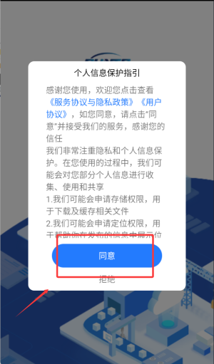 1、阅读并确认服务协议,点击进入应用主功能操作界面。