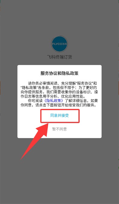 1、首次打开软件后,请仔细阅读页面内容并点击“同意并接受”按钮进入下一步。