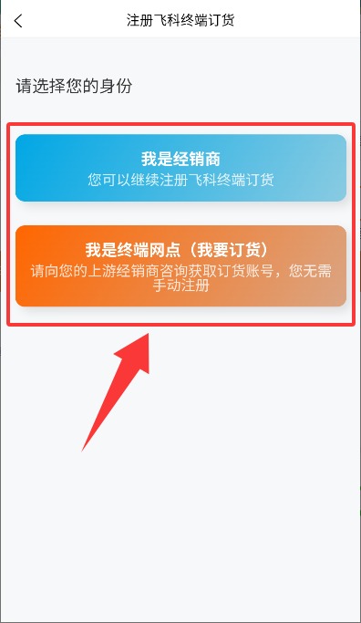 2、新用户需点击注册功能,并根据系统提示选择经销商或终端网点身份完成资料填写。