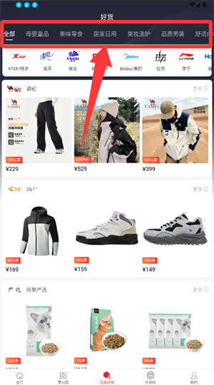 2、进入好货界面,选择母婴或美食等目标品类。