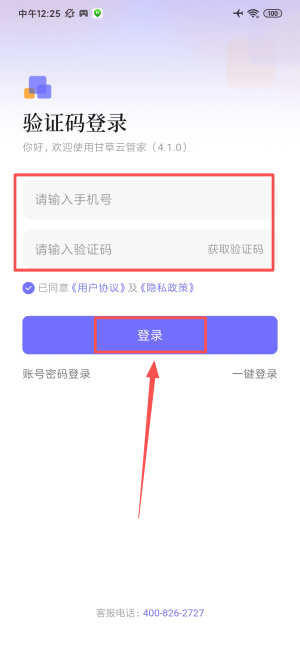2、在验证码登录页填写手机号与验证码,确认协议后点击登录完成操作。