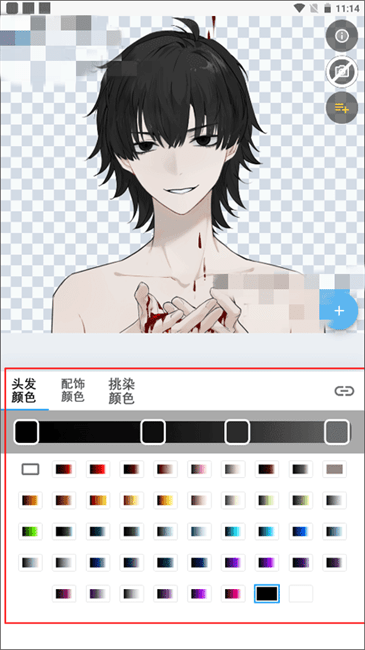 4、并且等你再次打开调色板,你会看到可以对头发、配饰、挑染进行调色了。