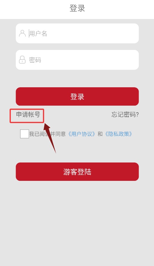 2、在登录页点击左下角“申请账号”按钮,进入账号创建页面。