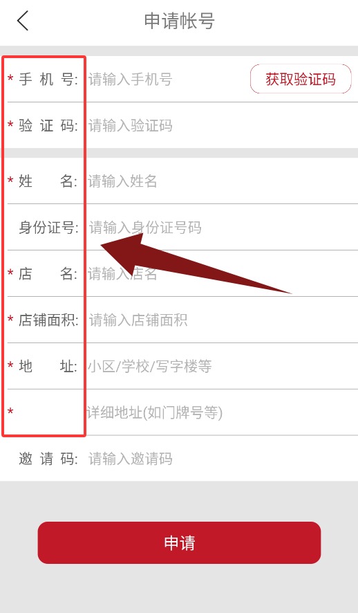 3、申请界面需填写带红色星号的必填项,包括手机号与姓名等。