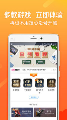 3、超多热门游戏账号租赁:王者荣耀、手游CF、绝地求生(吃鸡)、CF、英雄联盟LOL、QQ飞车、球球大作战等热门游戏高段位,绚装备、多皮肤、V8大神租号体验。