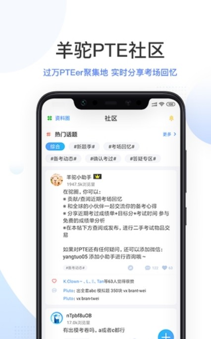 6、PTE分享互动羊驼社区,PTE新鲜考场机经收录、战友动态、资源互换、都可在这里一键完成