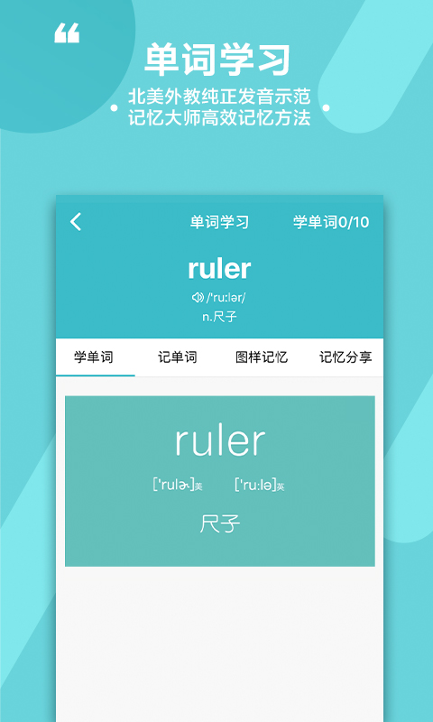 2、每个单词都有外教讲解发音、自然拼读和英语释义以及句子应用,每个单词也都有世界记忆大师的讲解和配图;