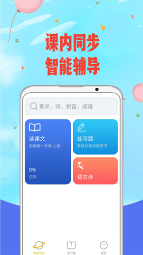 6、有着搜索功能可以帮助学生查字、词和拼音与成语,需要什么就可以找什么。