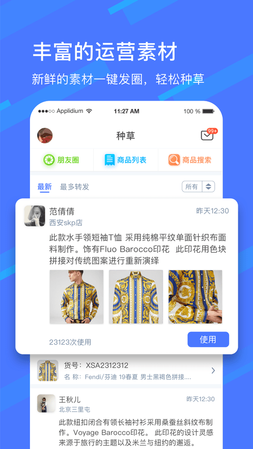 新鲜的商品素材一键发送朋友圈,轻松种草。