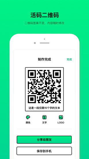 您制作完成的二维码可以直接以照片的形式保存至手机相册中。