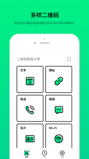二维码制造大师是一款手机即可随时制作二维码的软件,这款软件可以帮助用户制作各种二维码,包含了名片二维码、WiFi二维码、收款二维码等,用户可以直接选择需要制作的二维码类型,app就会直接对应到相应的操作界面,非常好用,快来下载使用吧!