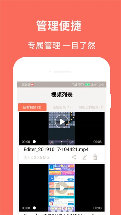 录制完成后的视频可以:播放、编辑、删除、剪辑、导出、还可以一键分享给好友。