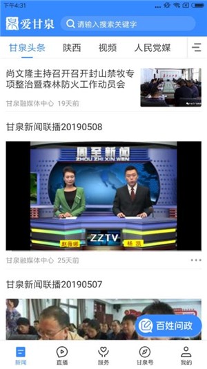 爱甘泉是为甘泉百姓准备的新闻资讯阅读软件,这里可以观看最新的时事还有本地资讯,让用户手机上就可以及时看到最新政治动态和民生生活,只需要输入关键字就可以查看自己想看的,还有直播新闻和各种服务等你体验哦,快来下载吧!