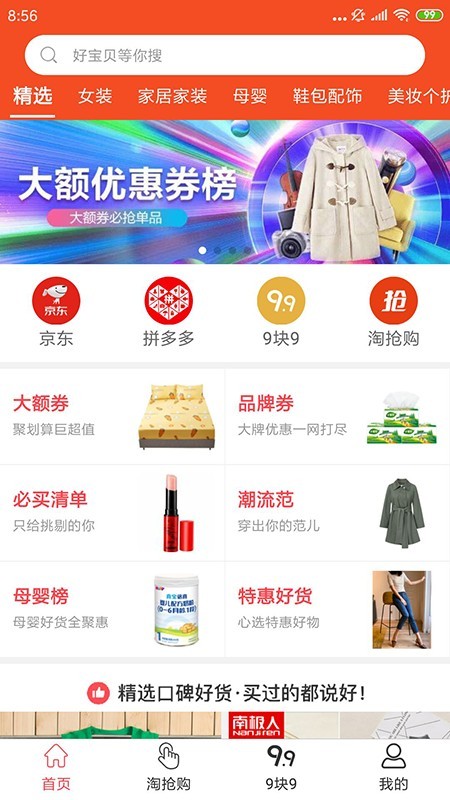 0元夺宝、9.9包邮、聚划算、淘抢购等特色专区低价好物等你来抢;