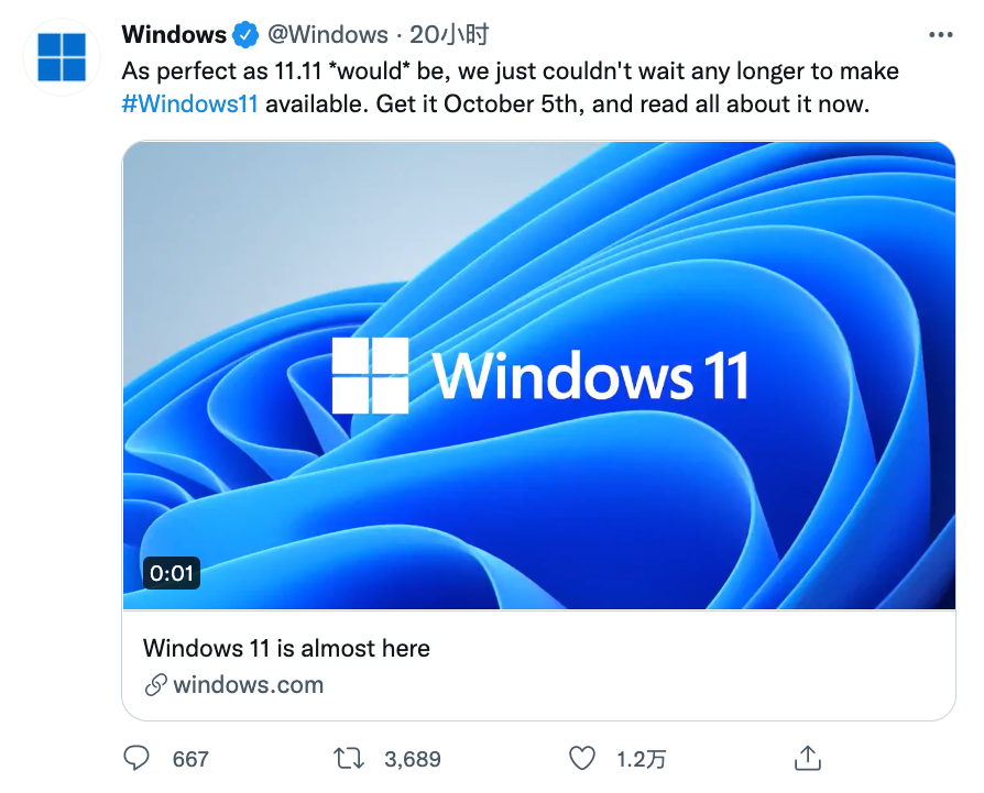 前天, 微软宣布将于2021年10月5日正式开始推送Windows 11,符合条件的Windows 10将可免费升级到Windows 11,预装Windows 11的各种全新PC设备也将开始上市发售。
