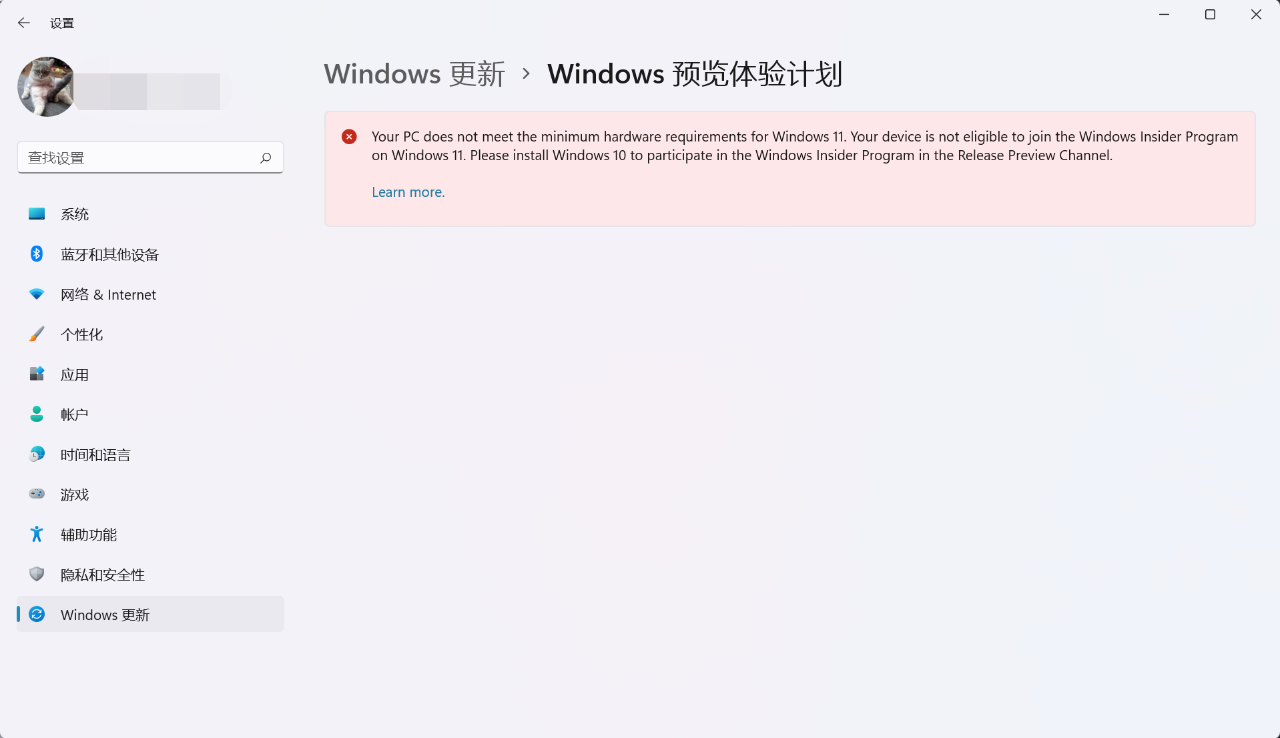 而有些会提示电脑不满足 Windows 11系统要求,无法加入预览计划,这是由于 TPM 等限制。