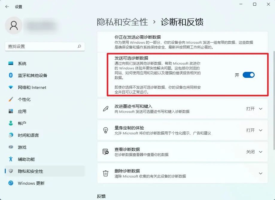 而有些朋友在预览计划页面只看到一片空白,这时你需要在 隐私和安全性-诊断和反馈 中打开 发送可选诊断数据: