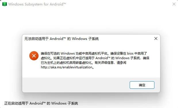此外,你可能还会遇到需要启用虚拟化的提示,前面准备阶段就让你们在 BIOS 中开启虚拟化了哦。