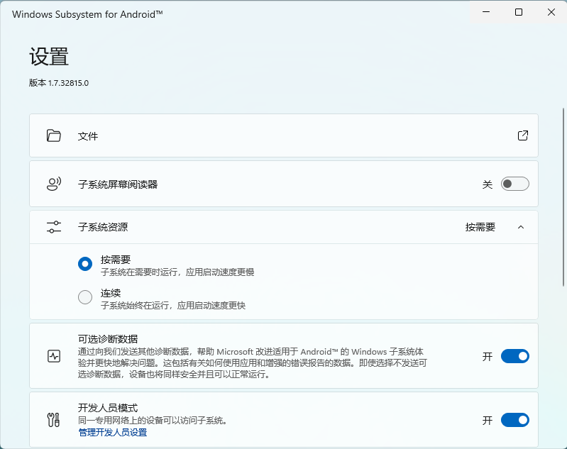 其中 Android 应用组件名为 Windows Subsystem for Android (以下简称 WSA )