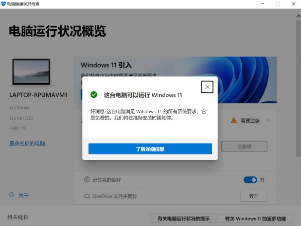 如果你的电脑符合以上的基本要求,就可以安装win11了。