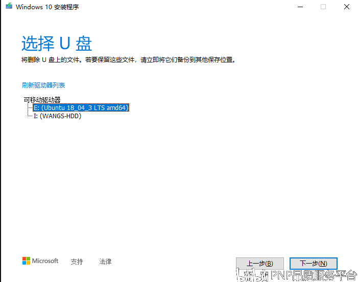 6、选择移动介质,这里需要注意,这个安装程序会删除U盘中的内容,请小伙伴们提前备份U盘数据。