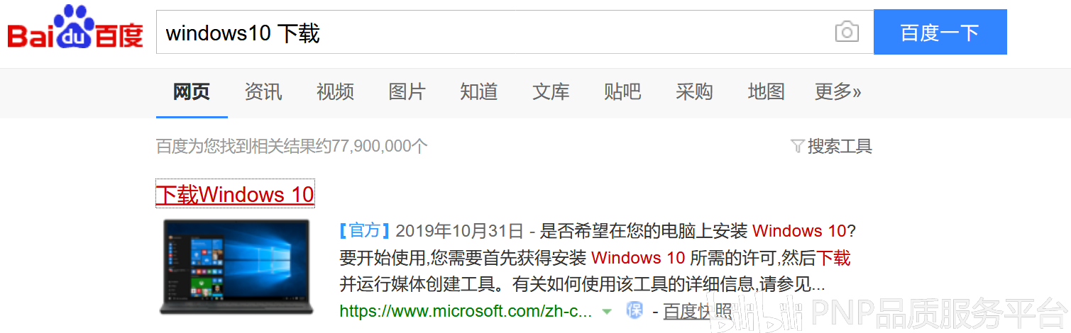 1、打开浏览器,使用百度搜索关键字“windows10 下载”,找到官方下载链接地址:https://www.microsoft.com/zh-cn/software-download/windows10。