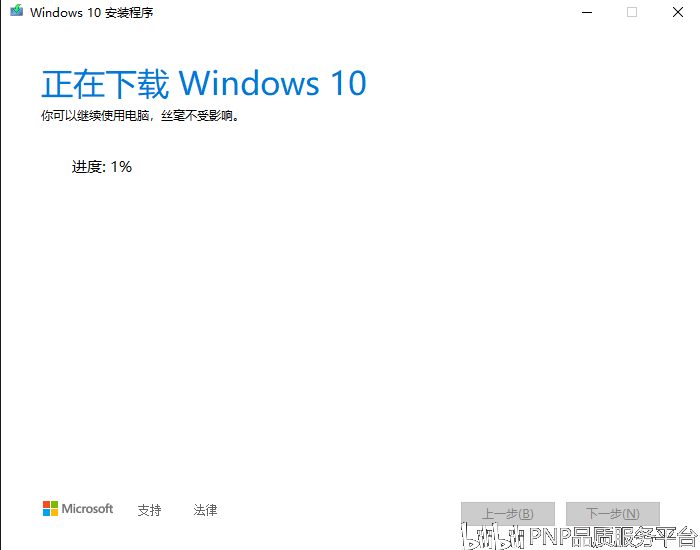 7、此时安装程序开始下载Windows10镜像文件,你可以把这个程序最小化,继续使用电脑做其他的事情。
