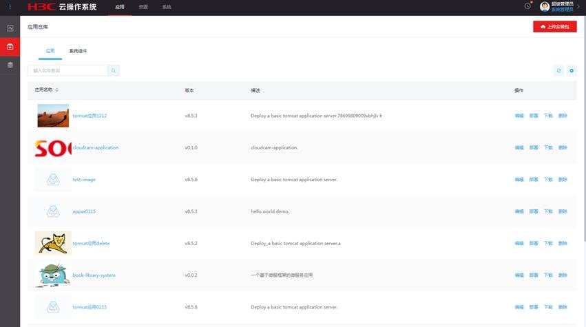 应用仓库服务是为用户提供的应用存储服务。用户可以按需上传,下载,编辑,查看,部署应用仓库里的应用;平台提供私有应用仓库和公有应用仓库,实现用户按需存储应用,同时提高应用的安全性。应用仓库支持容器化应用和传统应用的统一存储管理,进一步提升了应用仓库的存储能力。