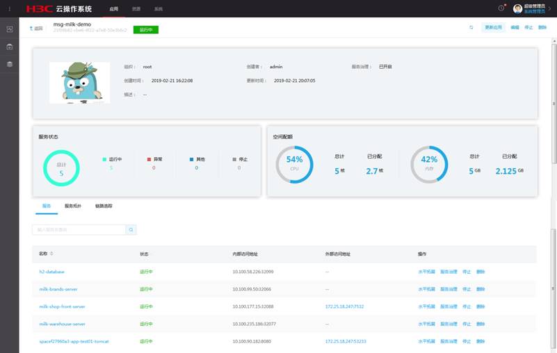 H3C CloudOS5.0云与智能平台将IT资源抽象为各种各样的云服务,用户根据需要按需申请、使用。目前H3C CloudOS5.0云与智能平台所能够提供的云服务包括:X86虚拟机、PowerVM虚拟机、云硬盘、云网盘、云防火墙、云负载均衡、防病毒、云网络、云数据库、公网IP、裸金属服务器等IaaS服务;应用仓库、应用管理、镜像仓库、应用模板、流水线等PaaS服务;项目管理、代码管理、制品管理等开发测试服务; 分布式文件系统、NoSQL数据库、MPP数据库、文件服务、内存数据库、离线计算、内存计算、流式计算,数据集成、质量,元数据管理、工作流调度、数据仓库等大数据服务;模型存储、模型实例化、训练、超参搜索、评估、推理,指标监控等AI服务能力。