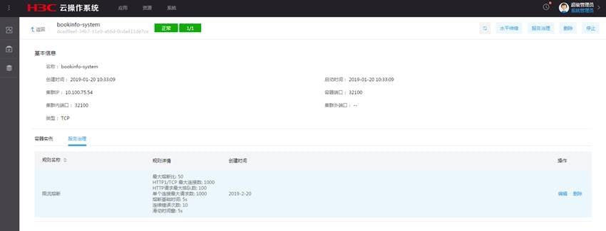 应用管理是对通过应用模板、应用仓库、应用蓝图快速创建和部署的应用进行的管理能力。用户可以基于应用管理里的某个应用查看应用所涵盖的服务的基本信息、容器实例、服务治理规格等以及对应用进行更新、编辑、停止、删除等操作。同时对于微服务治理的应用还可展示对应应用的服务拓扑及链路信息等。